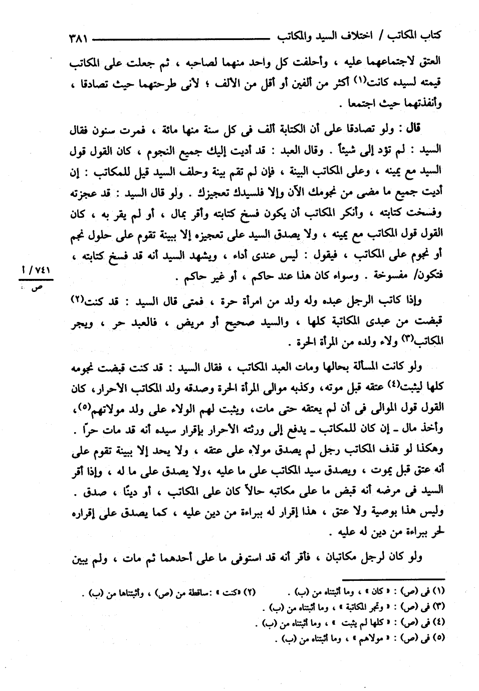 الْعِتْقَ لِاجْتِمَاعِهِمَا عَلَيْهِ وَأَحْلَفْت كُلَّ وَاحِدٍ مِنْهُمَا لِصَاحِبِهِ , ثُمَّ جَعَلْت عَلَى الْمُكَاتَبِ قِيمَتَهُ لِسَيِّدِهِ كَانَتْ أَكْثَرَ مِنْ أَلْفَيْنِ , أَوْ أَقَلَّ مِنْ الْأَلْفِ لِأَنِّي طَرَحْتُهُمَا حَيْثُ تَصَادَقَا وَأَنْفَذْتُهُمَا حَيْثُ اجْتَمَعَا .