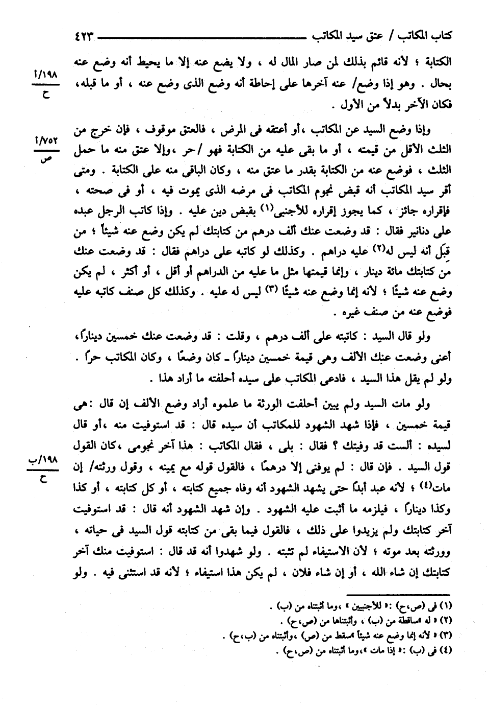 الْكِتَابَةِ ; لِأَنَّهُ قَائِمٌ بِذَلِكَ لِمَنْ صَارَ الْمَالُ لَهُ وَلاَ يَضَعُ عَنْهُ إلَّا مَا يُحِيطُ أَنَّهُ وَضَعَ عَنْهُ بِحَالٍ وَهُوَ إذَا وَضَعَ عَنْهُ آخِرَهَا عَلَى إحَاطَةِ أَنَّهُ وَضَعَ الَّذِي وَضَعَ عَنْهُ أَوْ مَا قَبْلَهُ فَكَانَ الْآخِرُ بَدَلاً مِنْ الْأَوَّلِ .