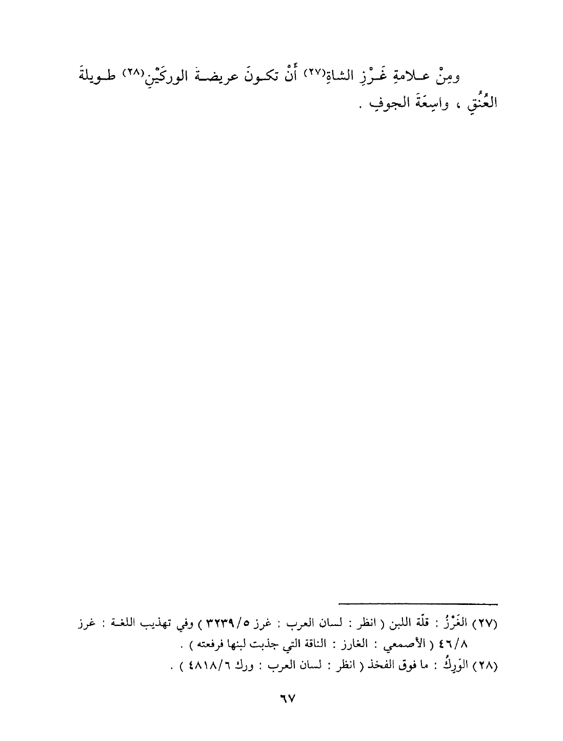 ومن علامة غرز الشاة أن تكون عريضة الوركين طويلة العنق، واسعة الجوف.