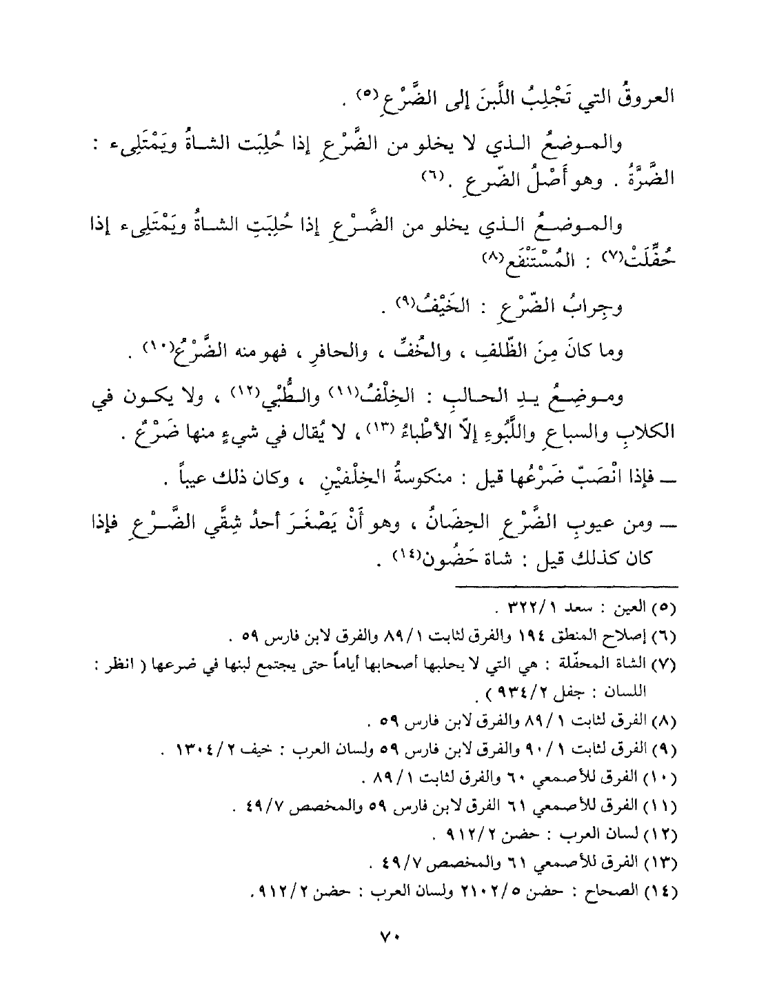 ومن عيوب الضرع الحضان، وهو أن يصغر أحد شقي الضرع فإذا كان كذلك قيل شاة حضون.