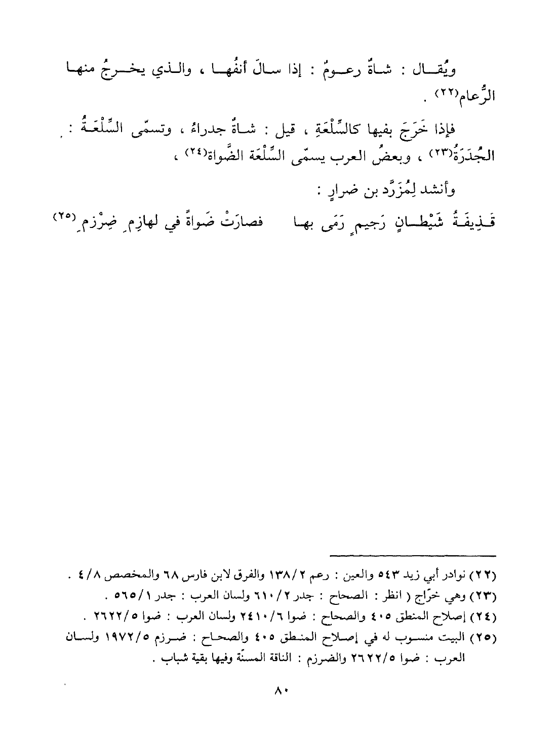 فإذا خرج بفيها كالسلعة، قيل شاة جدراء، وتسمى السلعة الجدرة، وبعض العرب يسمى السلعة الضواة.