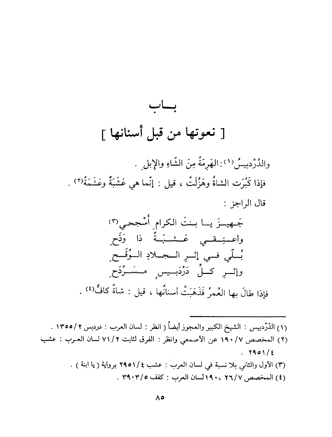 فإذا طال بها العمر فذهبت أسنانها، قيل شاة كاف.