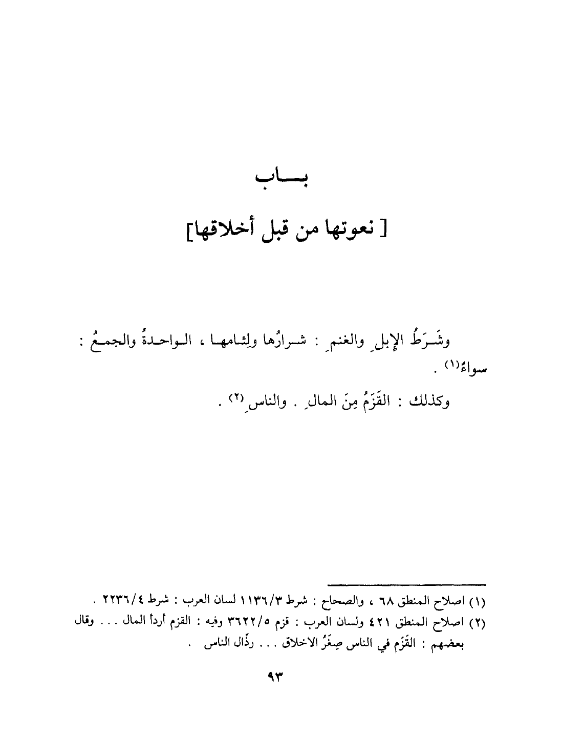 وشرط الإبل والغنم شرارها ولئامها، الواحدة والجمع سواء.