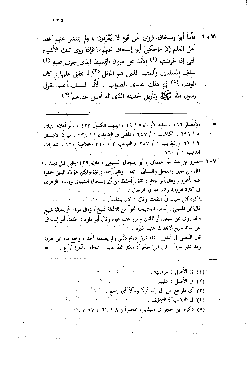 فأما أبو إسحاق فروى عن قوم لا يعرفون ولم ينتشر عنهم عند أهل العلم إلا ما حكى أبو إسحاق عنهم فإذا روى تلك الأشياء التي إذا عرضها الأمة على ميزان القسط الذي جرى عليهم سلف المسلمين وأئمتهم الذين هم الموئل لم تتفق عليها كان الوقف في ذلك عندي الصواب لأن السلف أعلم