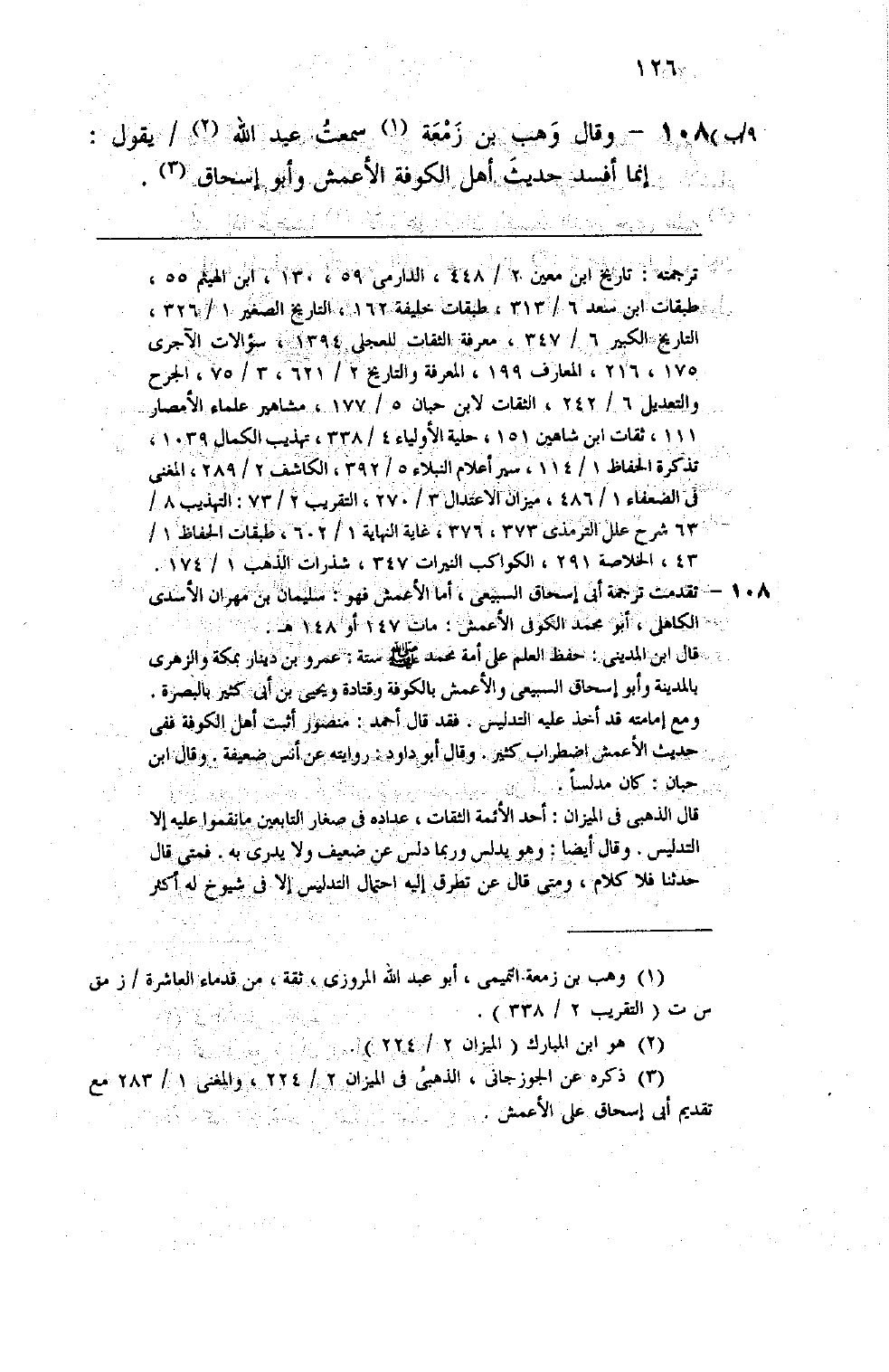 وقال وهب بن زمعة سمعت عبد الله يقول إنما أفسد حديث أهل الكوفة الأعمش وأبو إسحاق