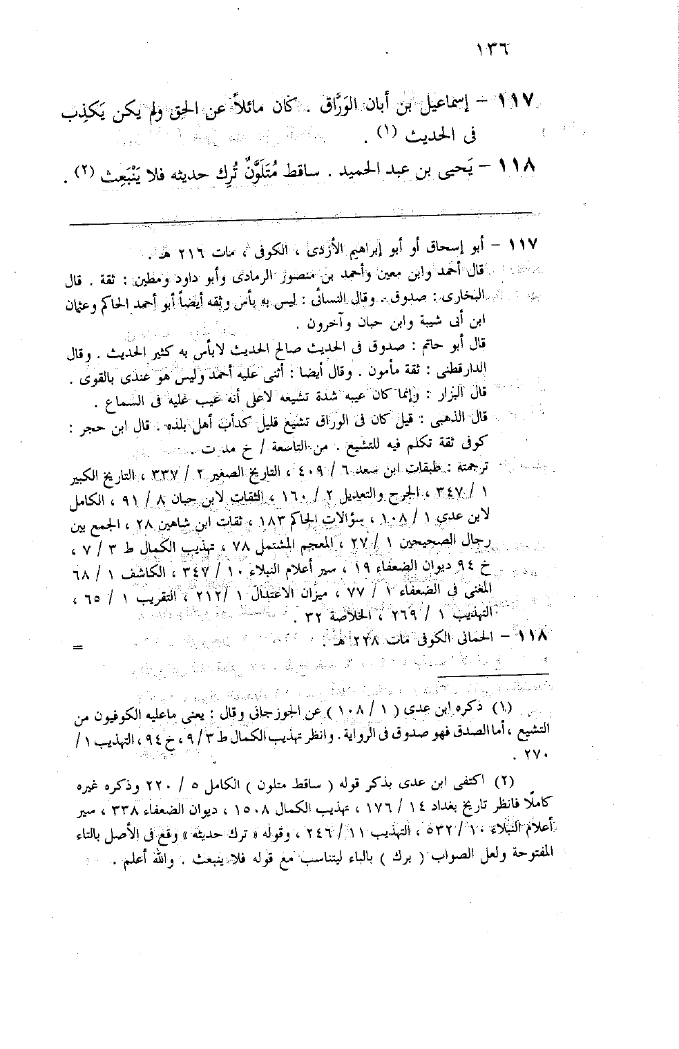 114 - إسماعيل بن أبان الوراق كان مائلا عن الحق ولم يكن يكذب في الحديث