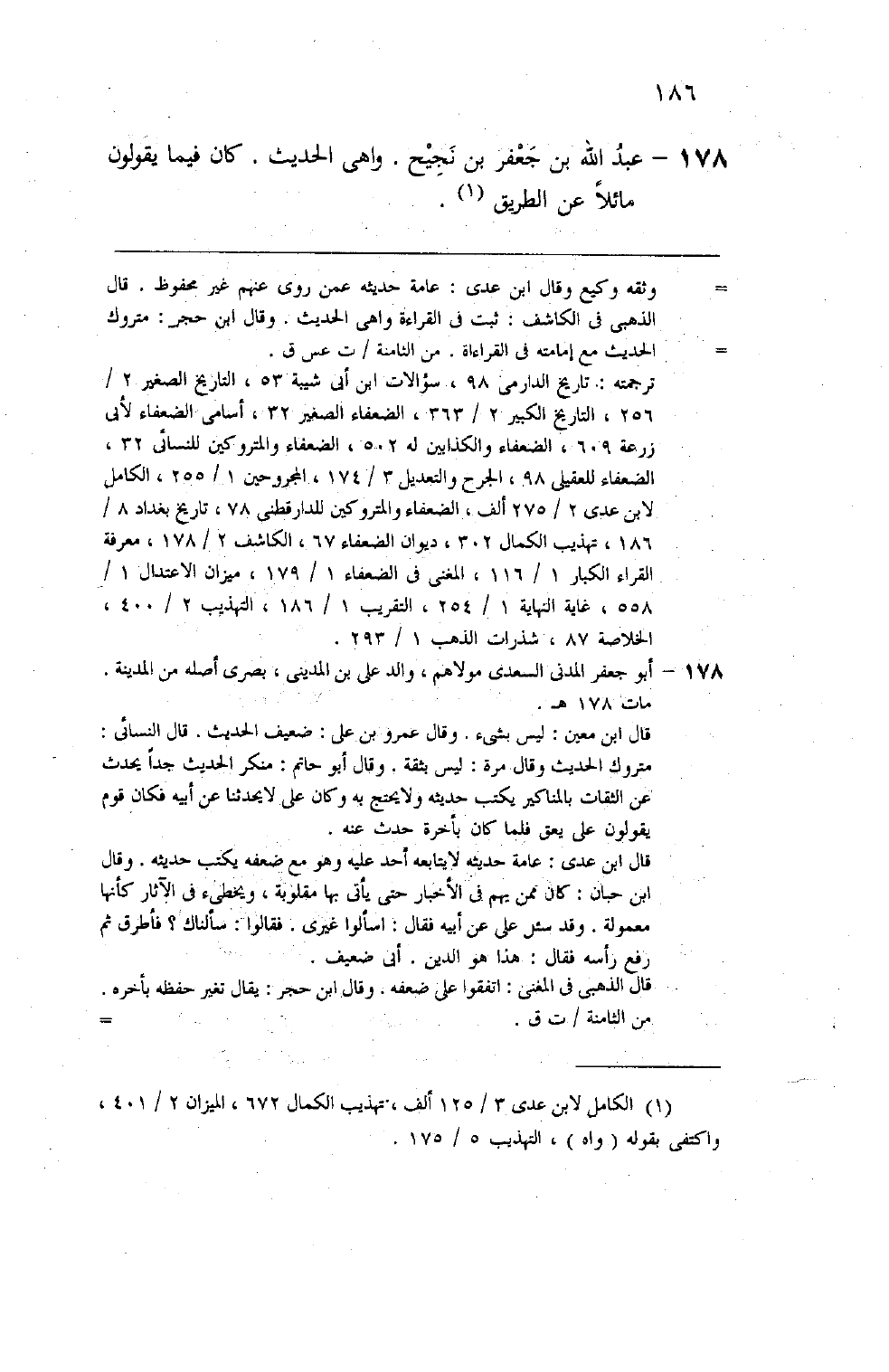 175 - عبد الله بن جعفر بن نجيح واهي الحديث كان فيما يقولون مائلا عن الطريق