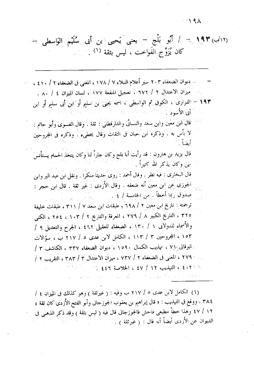 190 - أبو بلج يعني يحيى بن أبي سليم الواسطي كان يروج الفواخت ليس بثقة