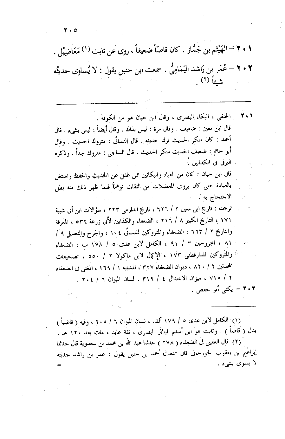 199 - عمر بن راشد اليمامي سمعت ابن حنبل يقول لا يساوي حديثه شيئا
