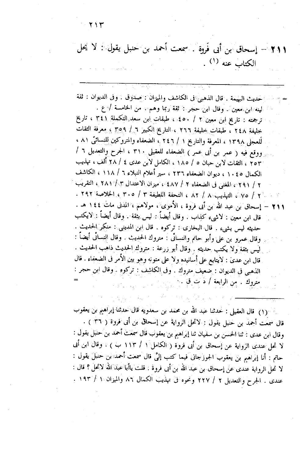 207 - إسحاق بن أبي فروة سمعت أحمد بن حنبل يقول لا يحل الكتاب عنه