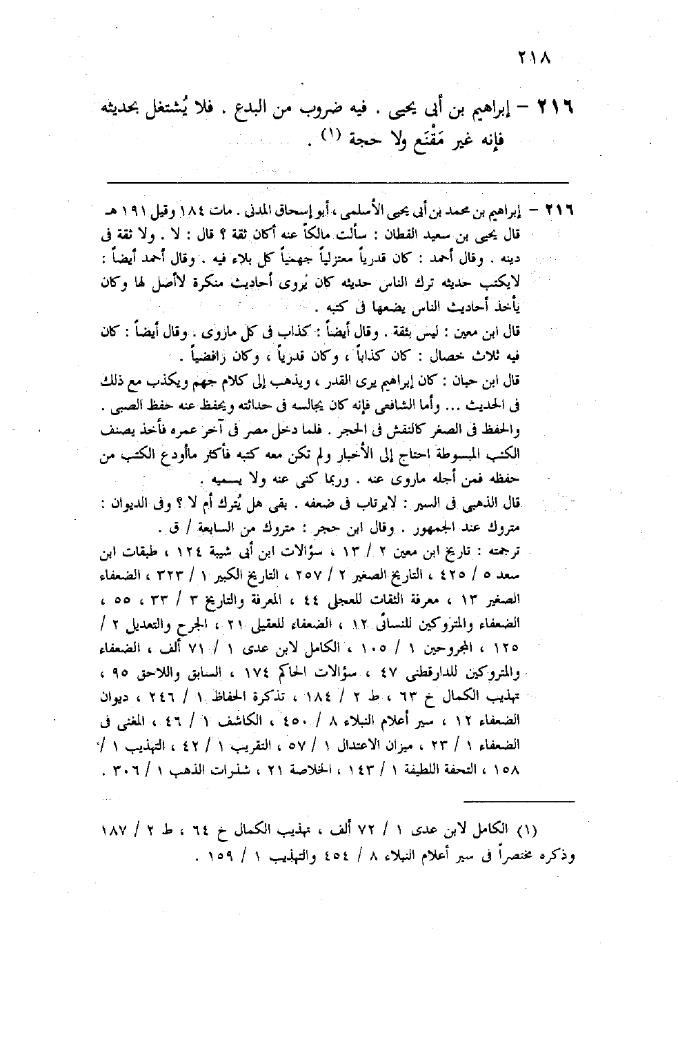 212 - إبراهيم بن أبي يحيى فيه ضروب من البدع فلا يشتغل بحديثه فإنه غير مقنع ولا حجة