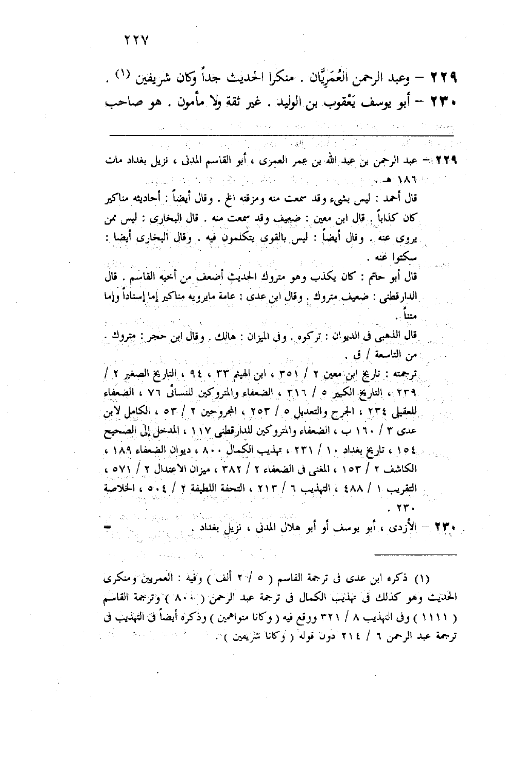 225 - وعبد الرحمن العمريان منكرا الحديث جدا وكانا شريفين