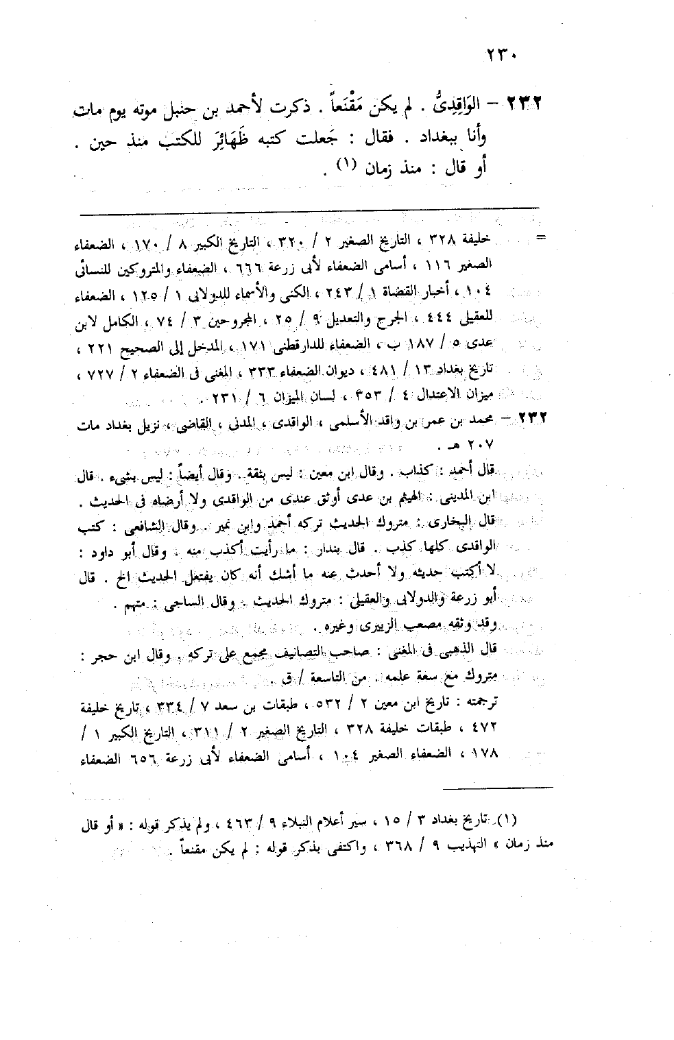 228 - الواقدي لم يكن مقنعا ذكرت لأحمد بن حنبل موته يوم مات وأنا ببغداد فقال حولت كتبه ظهائر للكتب منذ حين أو قال منذ زمان