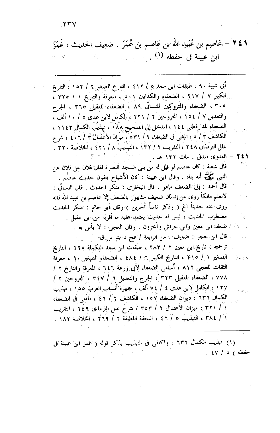 236 - عاصم بن عبيد الله بن عاصم بن عمر ضعيف الحديث غمز ابن عيينة في حفظه