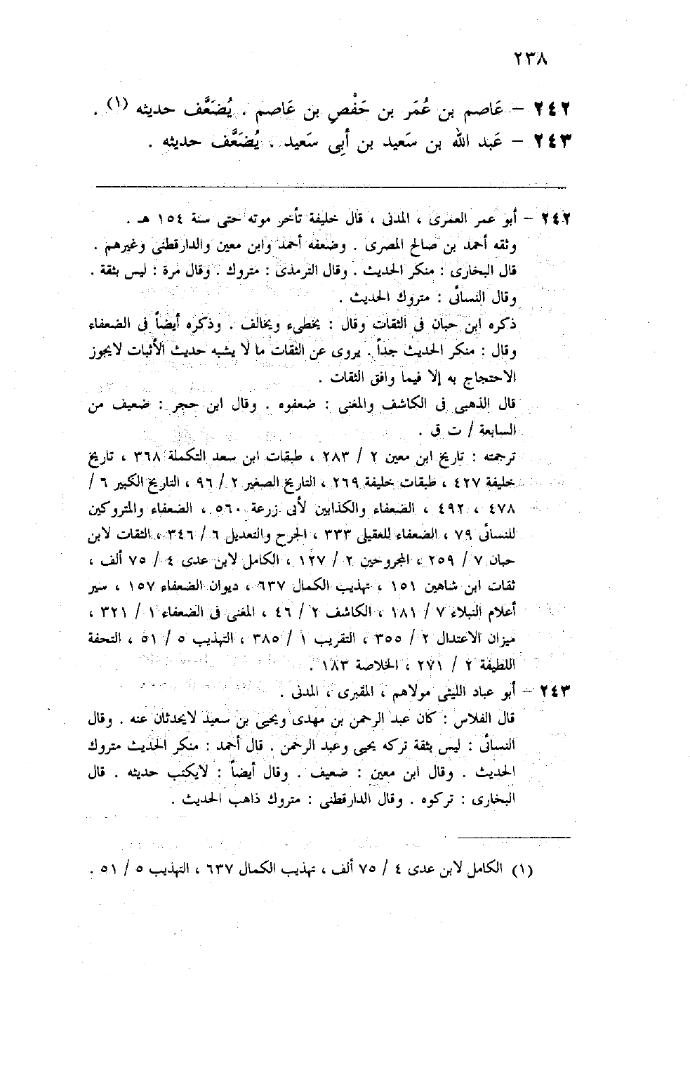 237 - عاصم بن عمر بن حفص بن عاصم يضعف حديثه