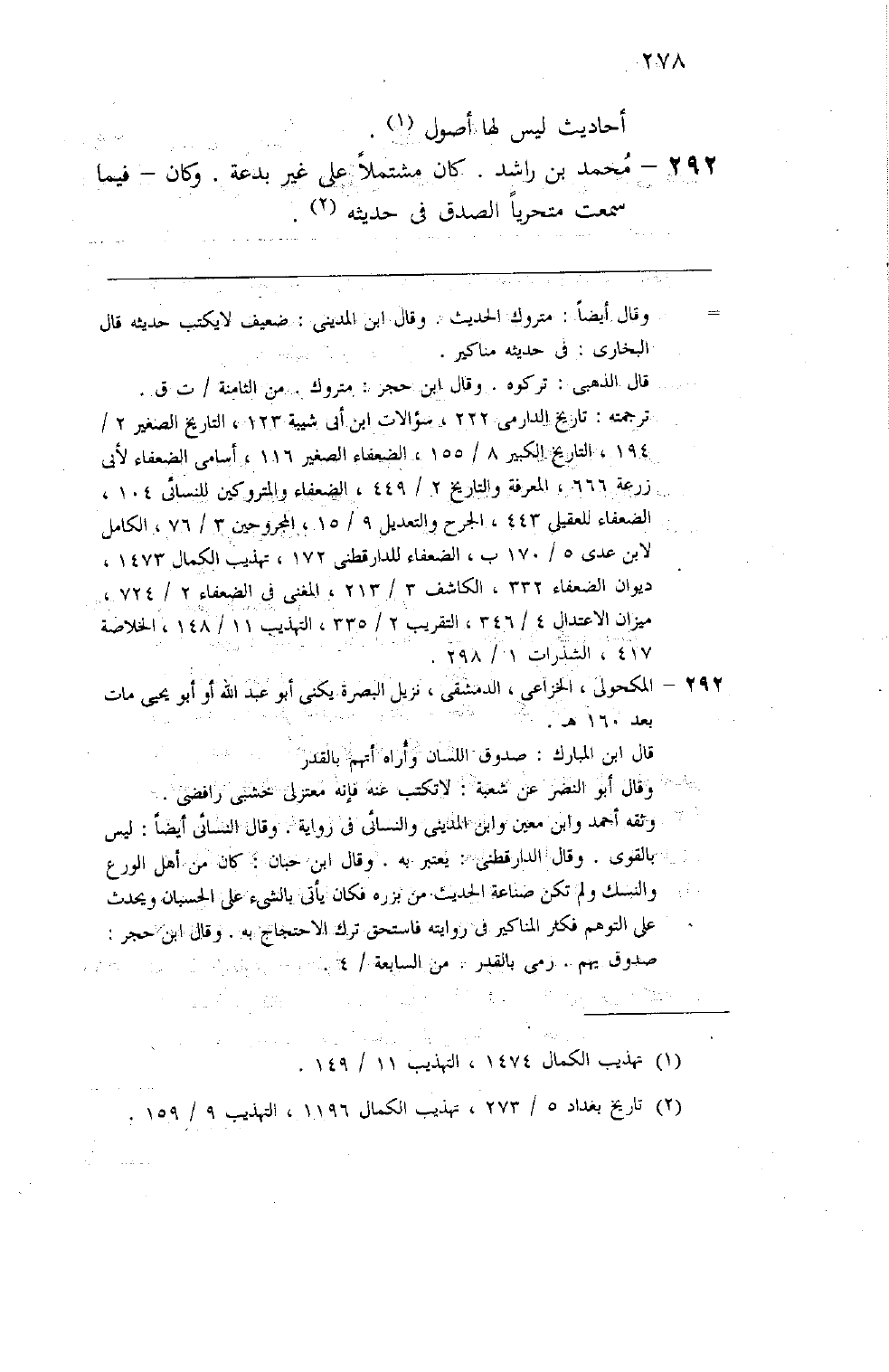 287 - محمد بن راشد كان مشتملا على غير بدعة وكان فيما سمعت متحريا الصدق في حديثه