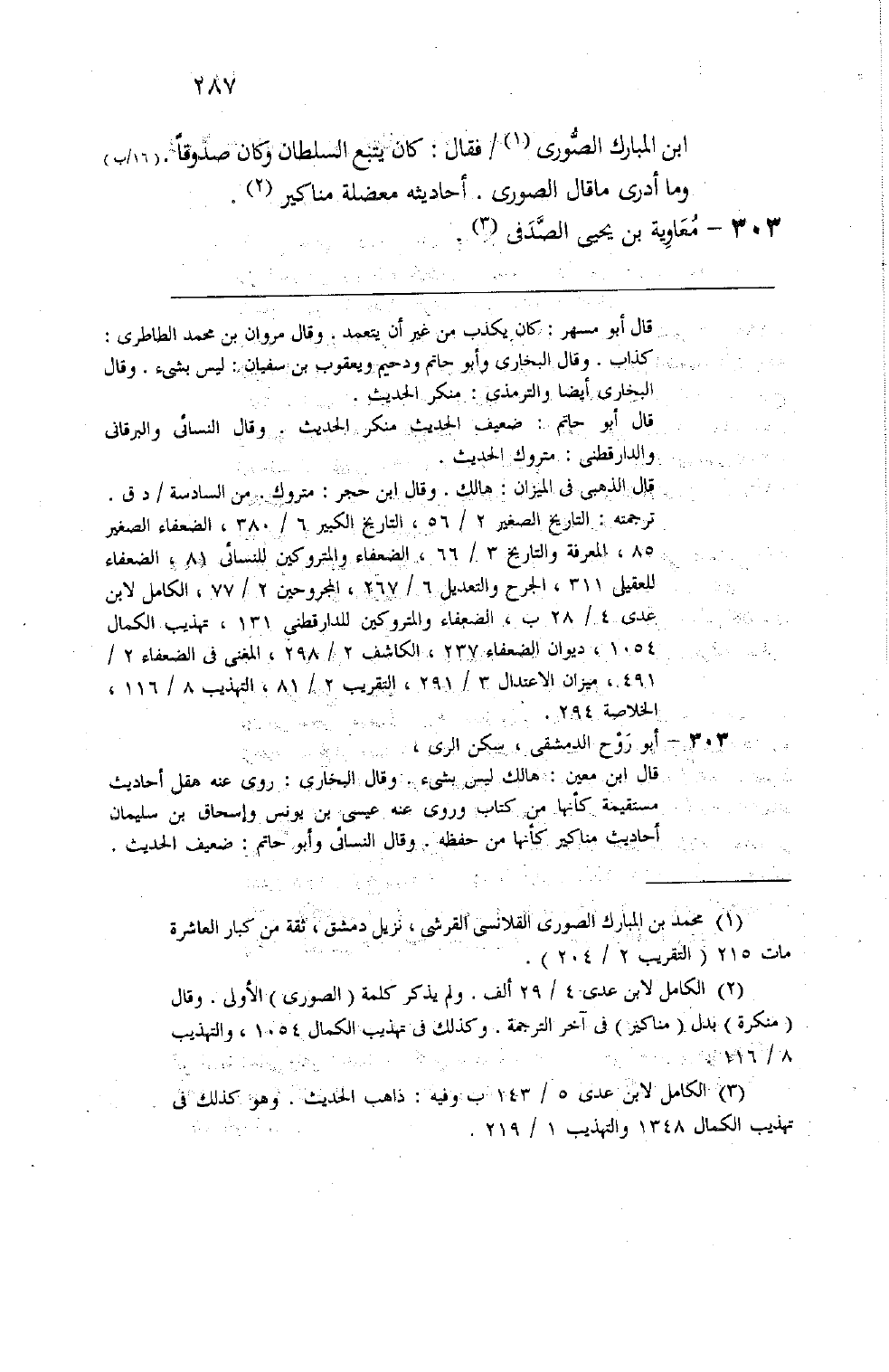 بن المبارك الصوري فقال كان يتبع السلطان وكان صدوقا وما أدري ما قال الصوري أحاديثه معضلة مناكير