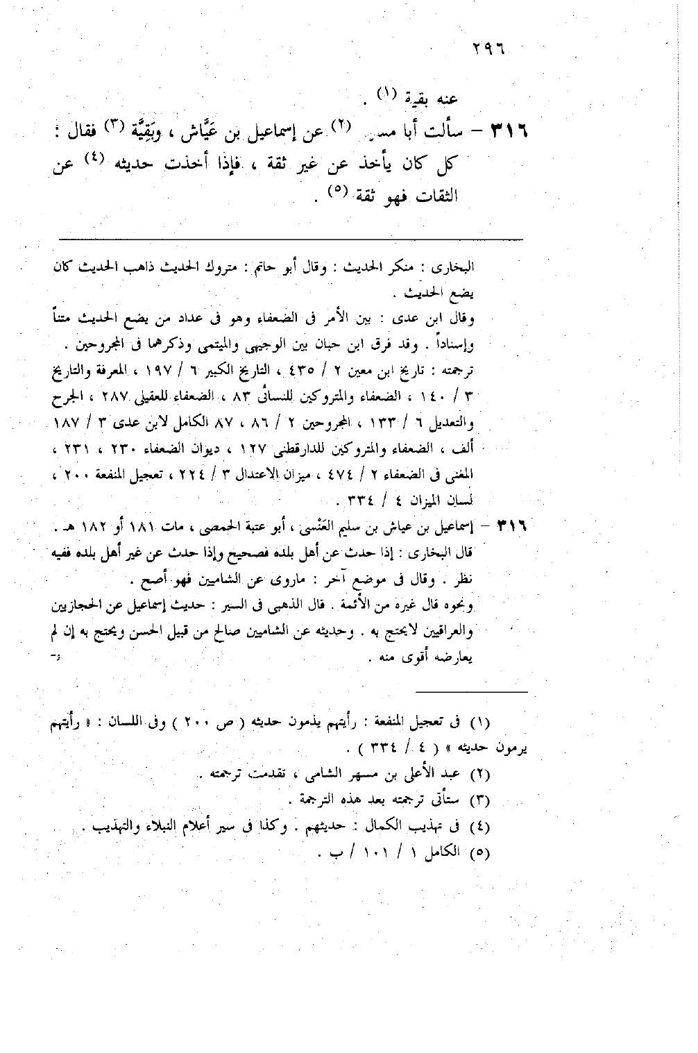 312 - وبقية فقال كل كان يأخذ عن غير ثقة فإذا أخذت حديثه عن الثقات فهو ثقة