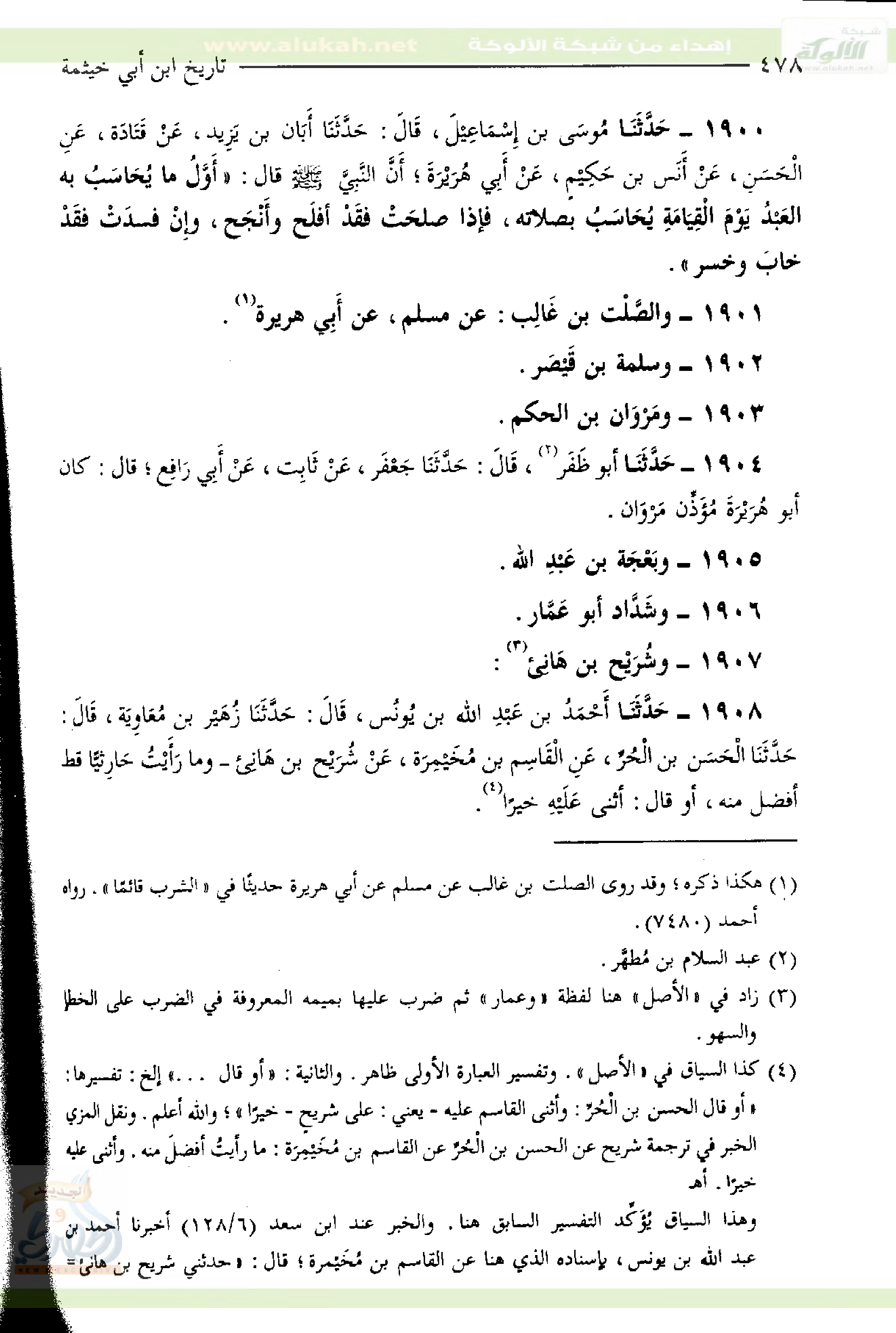 كتاب التاريخ الكبير لابن أبي خيثمة - السفر الثاني - ط الفاروق (اسم الجزء: 1)
