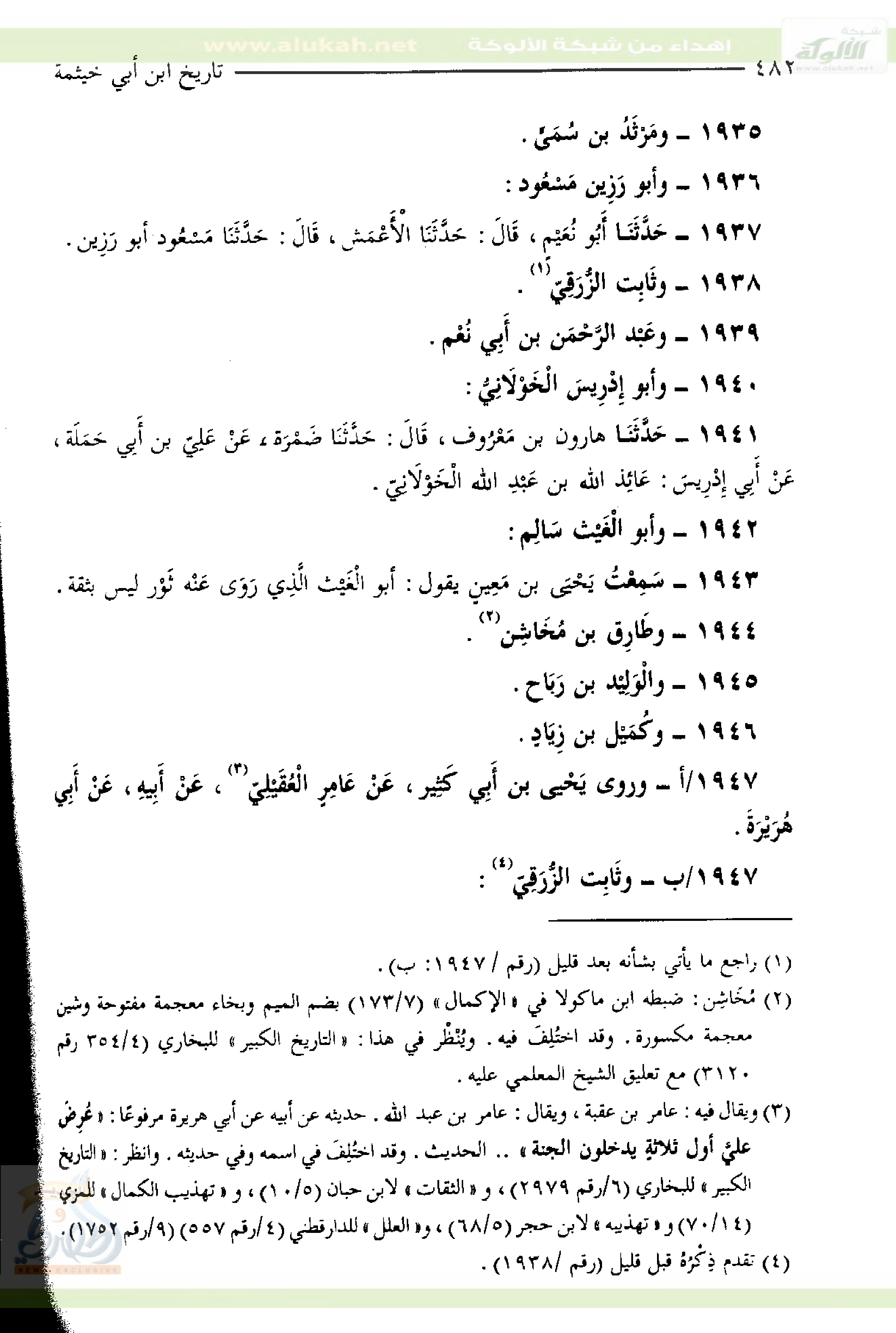 كتاب التاريخ الكبير لابن أبي خيثمة - السفر الثاني - ط الفاروق (اسم الجزء: 1)