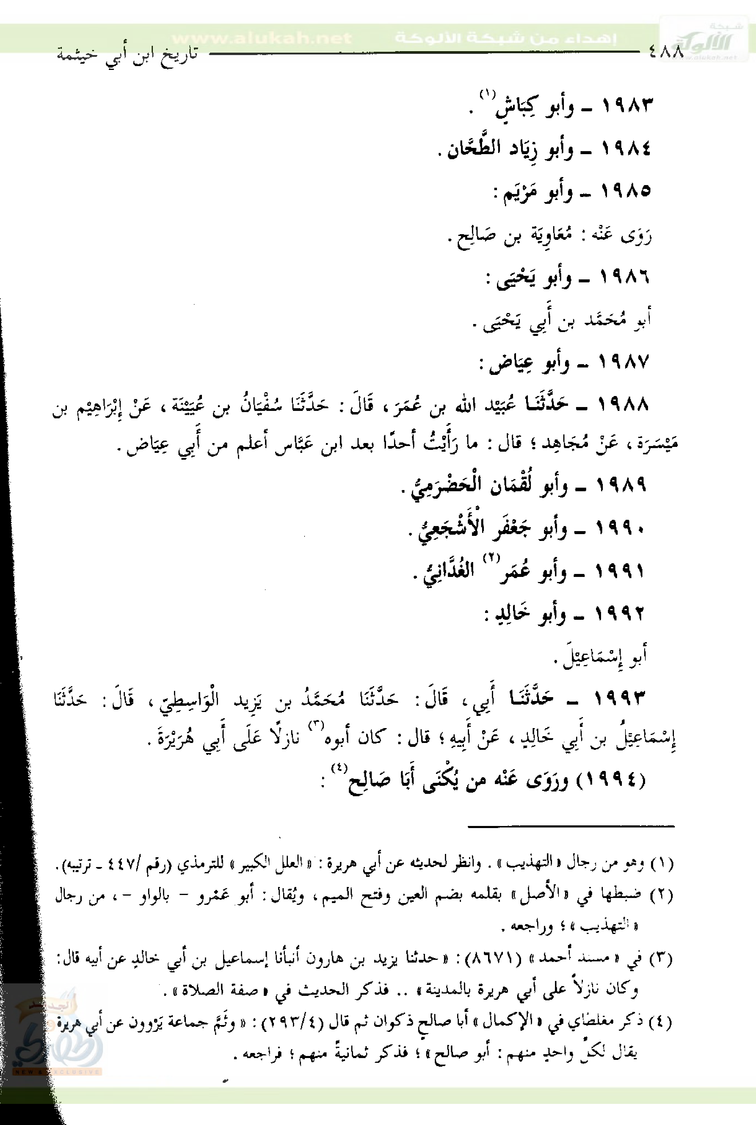 ١٩٩٢- وَأَبُو خَالِدٍ: أَبُو إِسْمَاعِيْلَ.