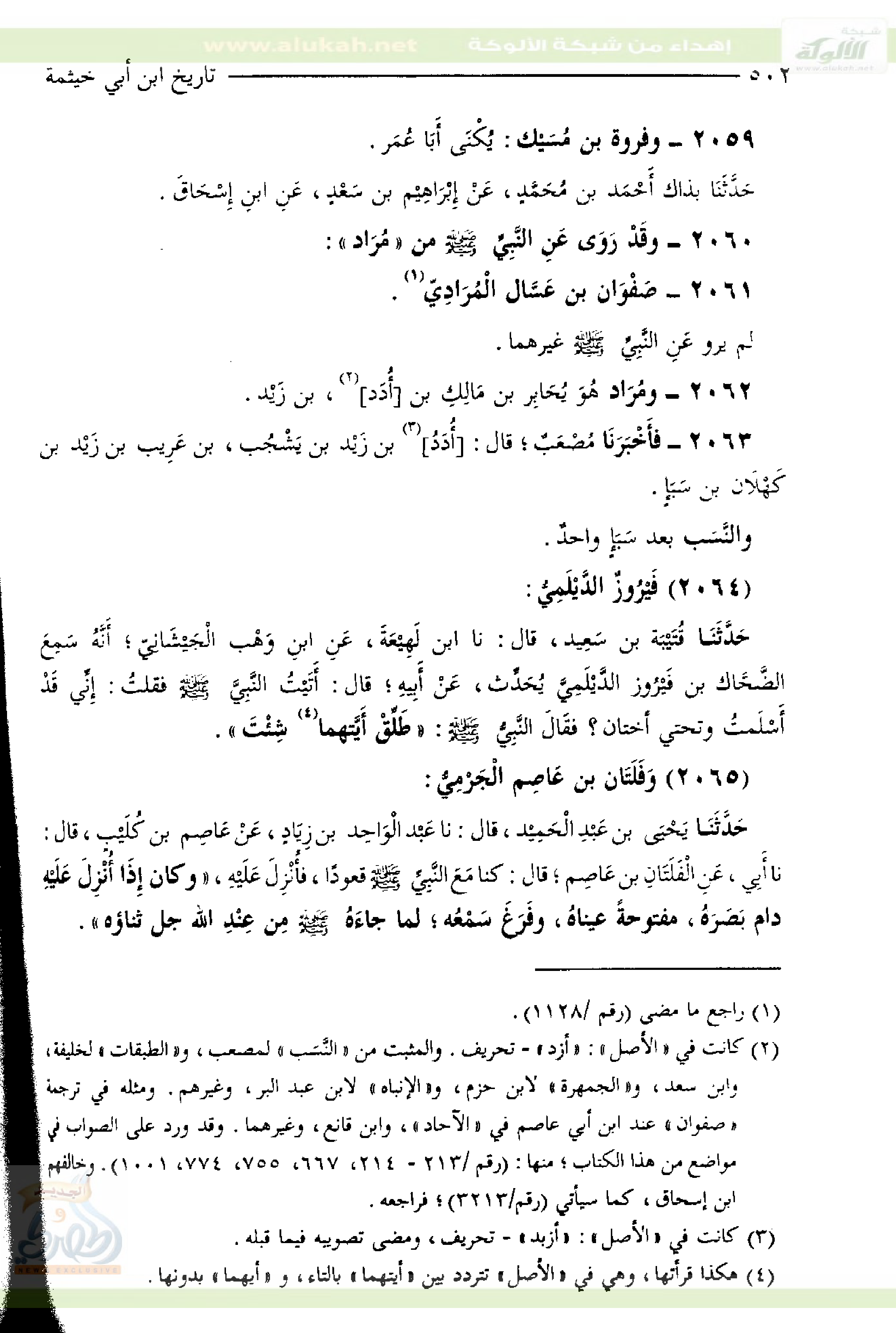 كتاب التاريخ الكبير لابن أبي خيثمة - السفر الثاني - ط الفاروق (اسم الجزء: 1)