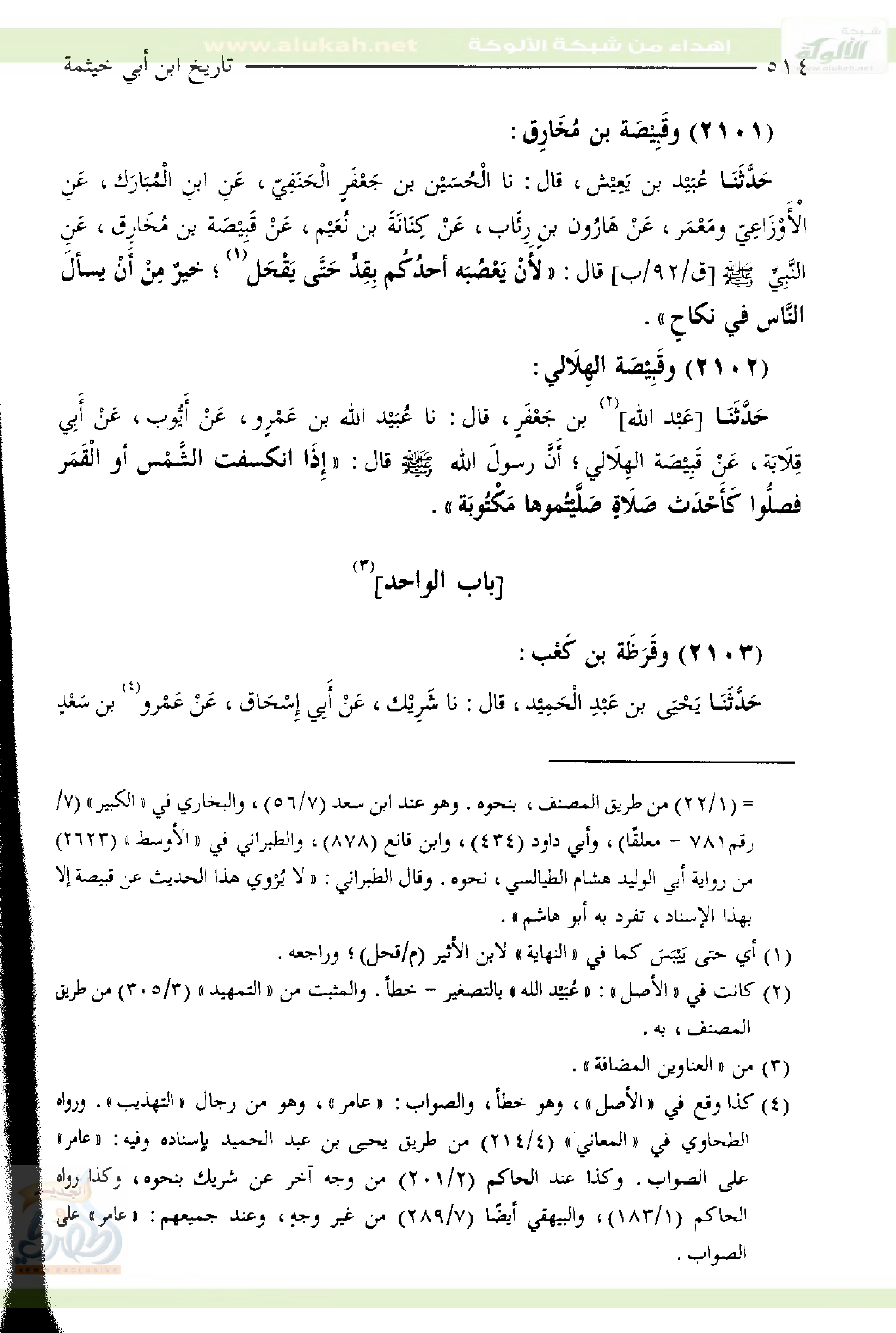 كتاب التاريخ الكبير لابن أبي خيثمة - السفر الثاني - ط الفاروق (اسم الجزء: 1)