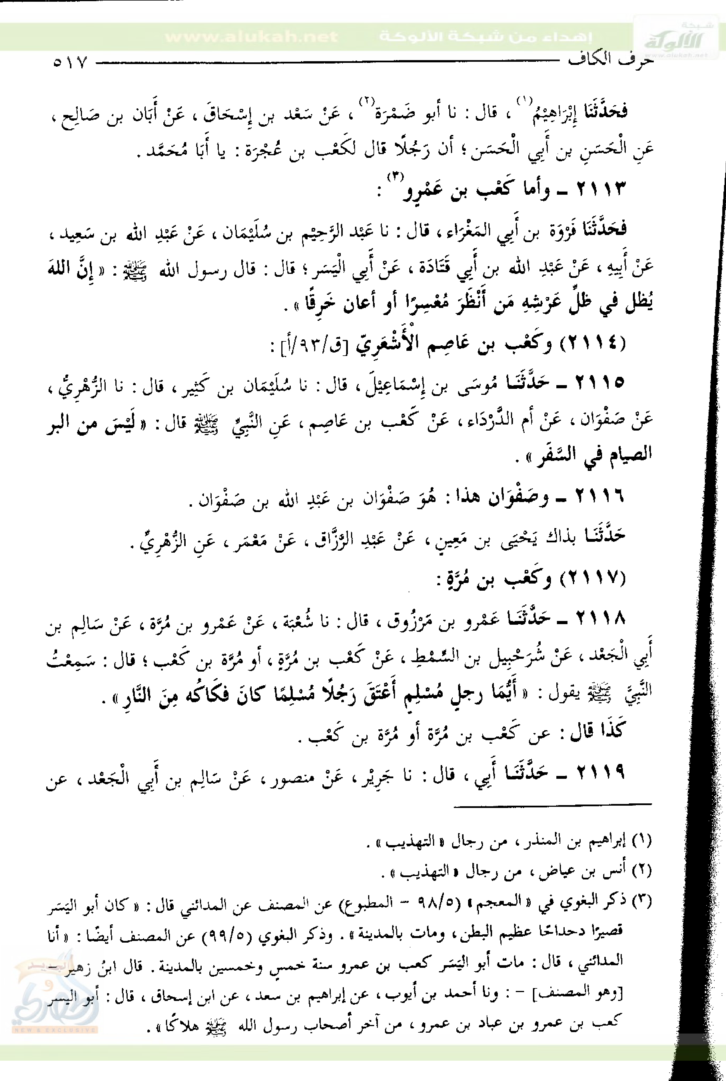٢١١٧- وكَعْب بْنُ مُرة: