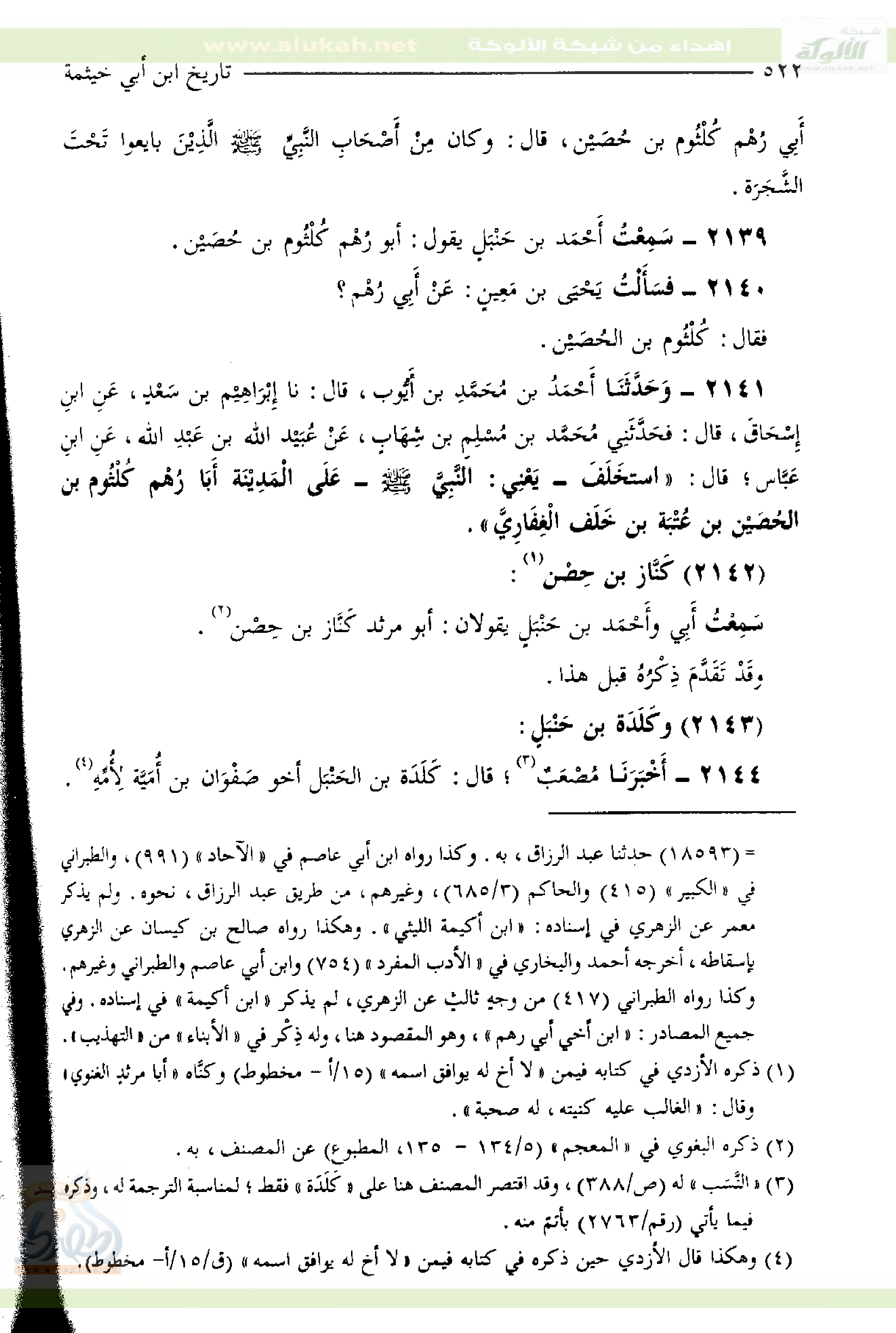 ٢١٣٩- سَمِعْتُ أَحْمَد بْنَ حَنْبَلٍ يَقُولُ: أَبُو رُهْم كُلْثُوم بْنُ حُصَيْن.
