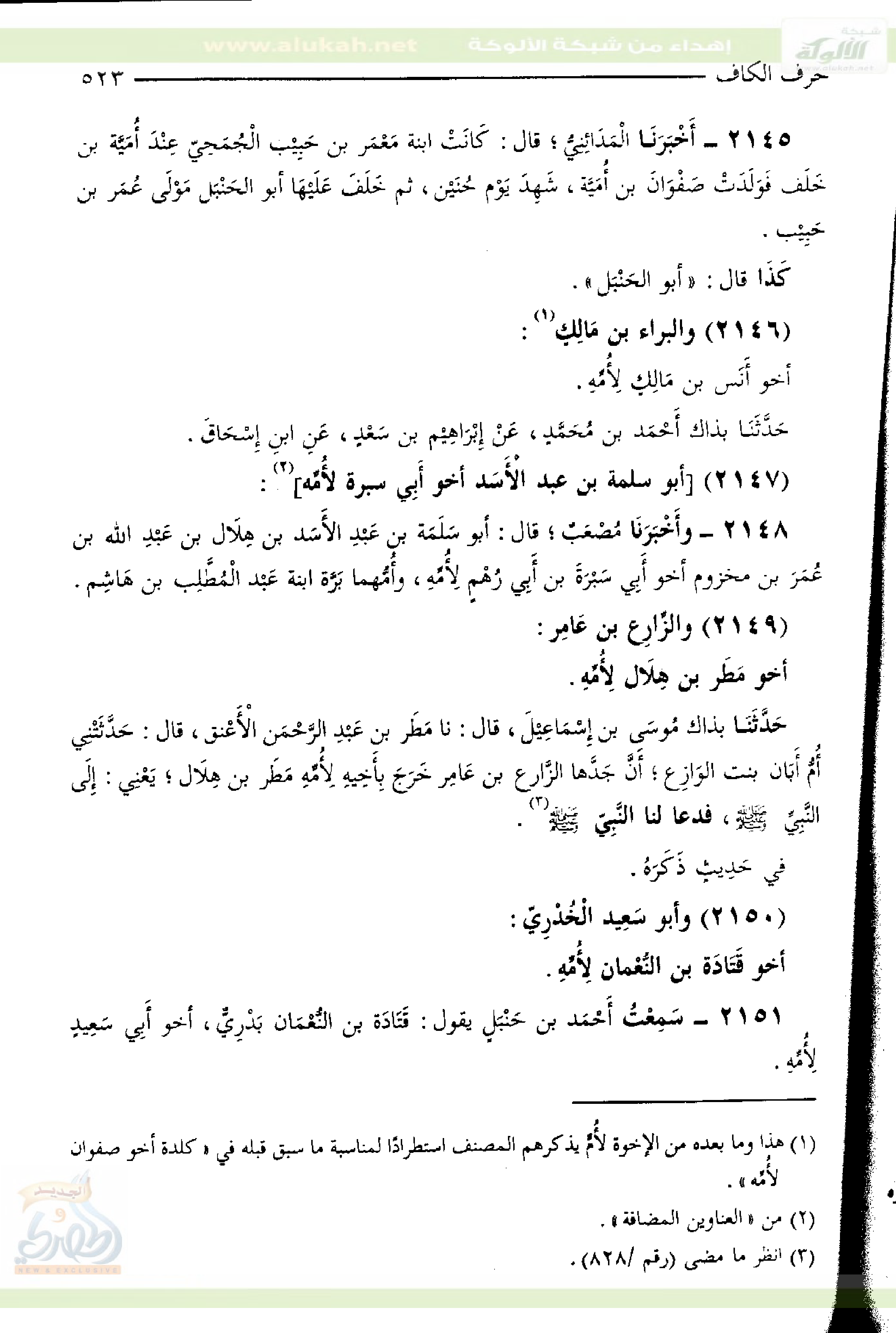 ٢١٤٦- وَالْبَرَاءُ بْنُ مَالِكٍ، أَخُو أَنَس بْنِ مَالِكٍ لِأُمِّهِ.
