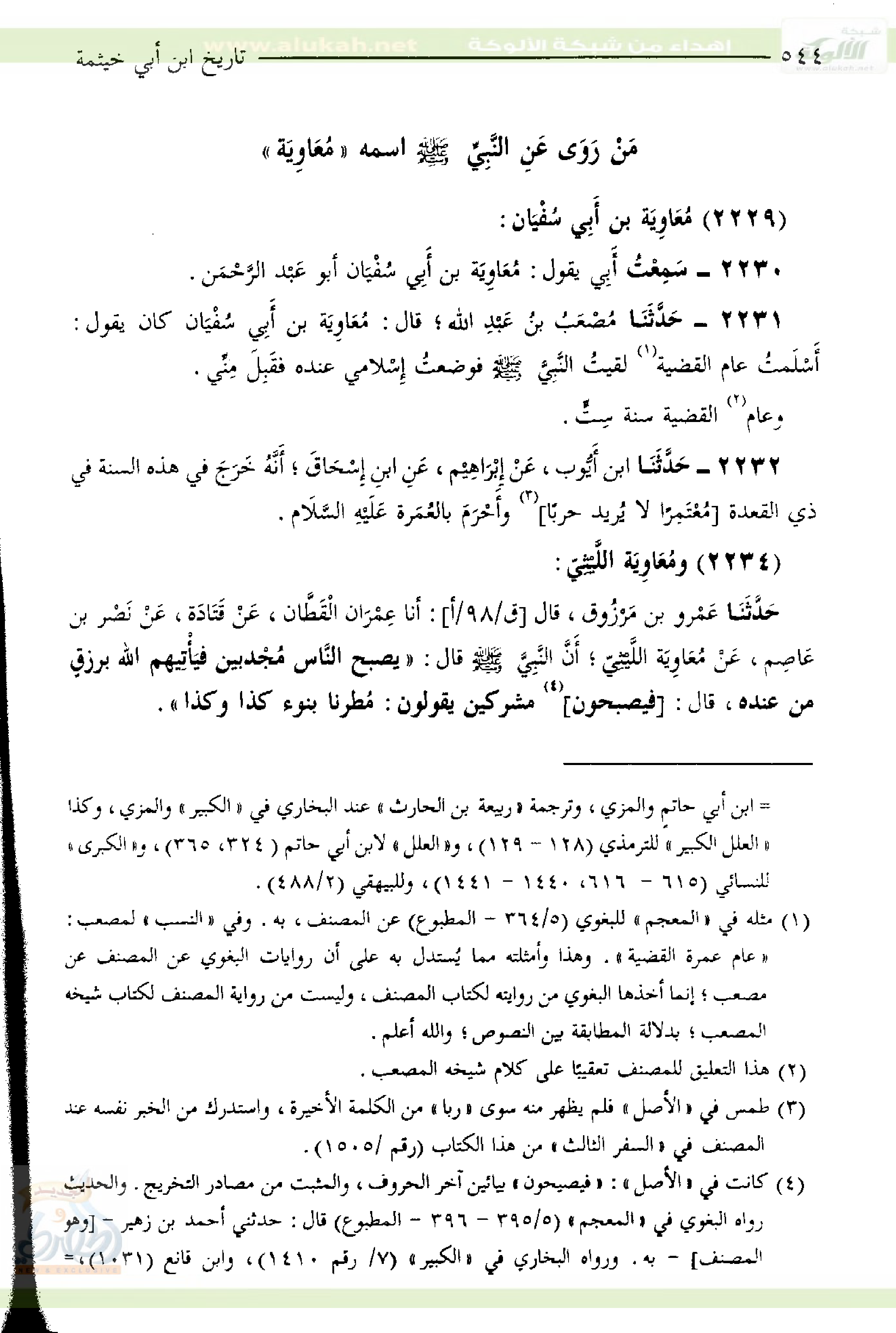 مَنْ رَوَى عَنِ النَّبِيِّ صَلَّى اللَّهُ عَلَيْهِ وَسَلَّمَ اسْمُهُ "مُعَاوِيَة"