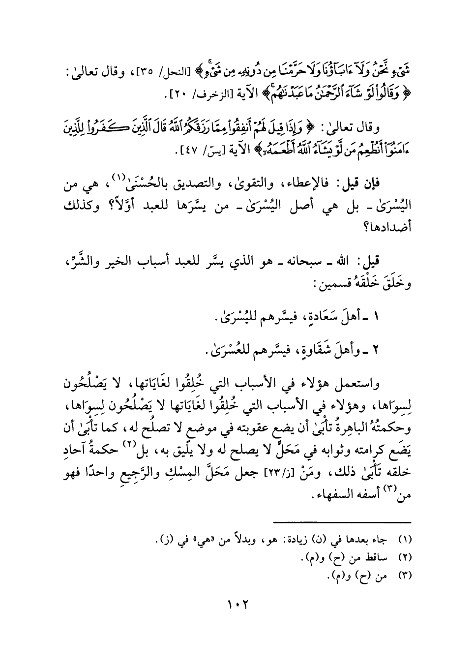 قيل: الله - سبحانه - هو الذي يسَّر للعبد أسباب الخير والشَّرِّ، وخَلَقَ خَلْقَهُ قسمين: