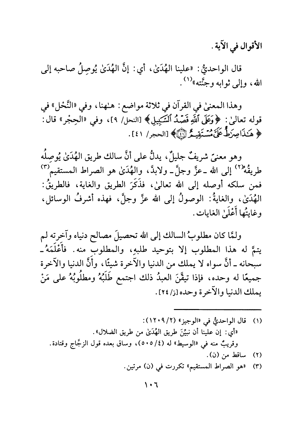 وهو معنىً شريفٌ جليلٌ، يدلُّ على أنَّ سالك طريق الهُدَى يُوصِلُه طريقُهُ (¬٢) إلى الله - عزَّ وجلَّ - ولابدَّ، والهُدَى هو الصراط المستقيم (¬٣) فمن سلكه أوصله إلى الله تعالى، فذَكَرَ الطريق والغاية، فالطريقُ: الهُدَى، والغايةُ: الوصولُ إلى الله - عزَّ وجلَّ -، فهذه أشرفُ الوسائل، وغايتُها أَعْلَى الغايات.