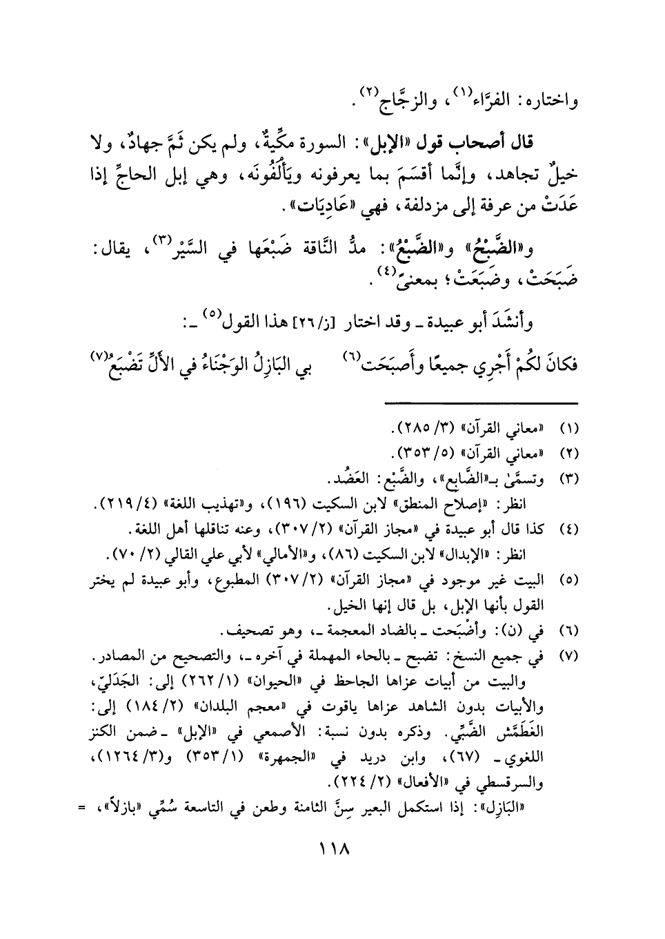(¬٥) البيت غير موجود في "مجاز القرآن" (٢/ ٣٠٧) المطبوع، وأبو عبيدة لم يختر القول بأنها الإبل، بل قال إنها الخيل.