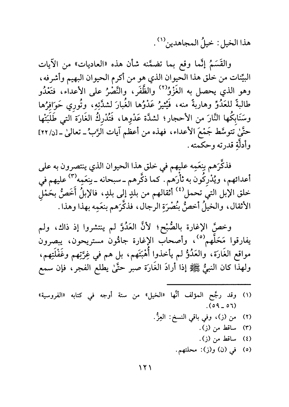 (¬١) وقد رجَّح المؤلف أنَّها "الخيل" من ستة أوجه في كتابه "الفروسية" (٥٦ - ٥٩).