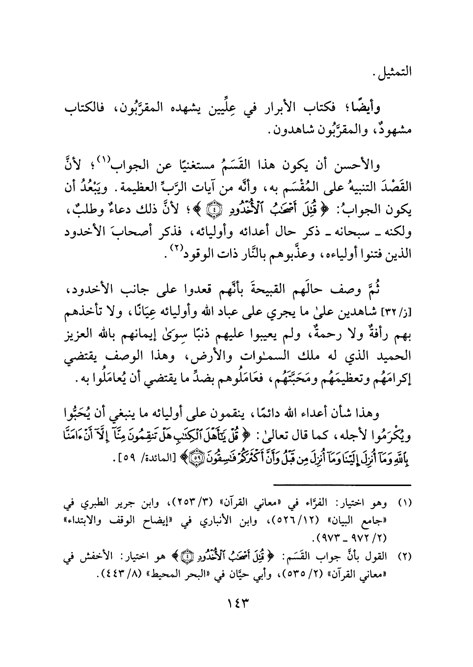 (¬٢) القول بأنَّ جواب القَسَم: {قُتِلَ أَصْحَابُ الْأُخْدُودِ (٤)} هو اختيار: الأخفش في "معاني القرآن" (٢/ ٥٣٥)، وأبي حيَّان في "البحر المحيط" (٨/ ٤٤٣).