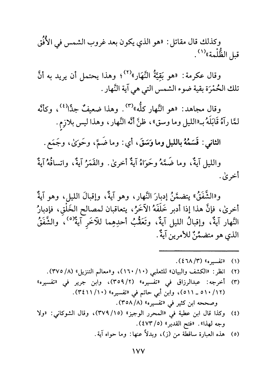وقال عكرمة: "هو بَقِيَّةُ النَّهَار" (¬٢)؛ وهذا يحتمل أن يريد به أنَّ تلك الحُمْرَة بقية ضوء الشمس التي هي آية النَّهار.
