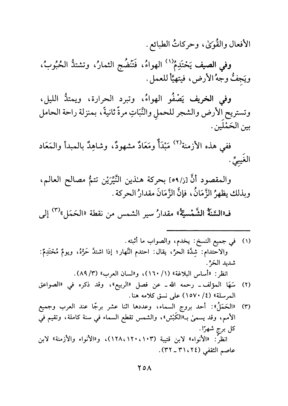 فـ "السَّنَةُ الشَّمْسيَّةُ" مقدارُ سير الشمس من نقطة "الحَمَل" (¬٣) إلى