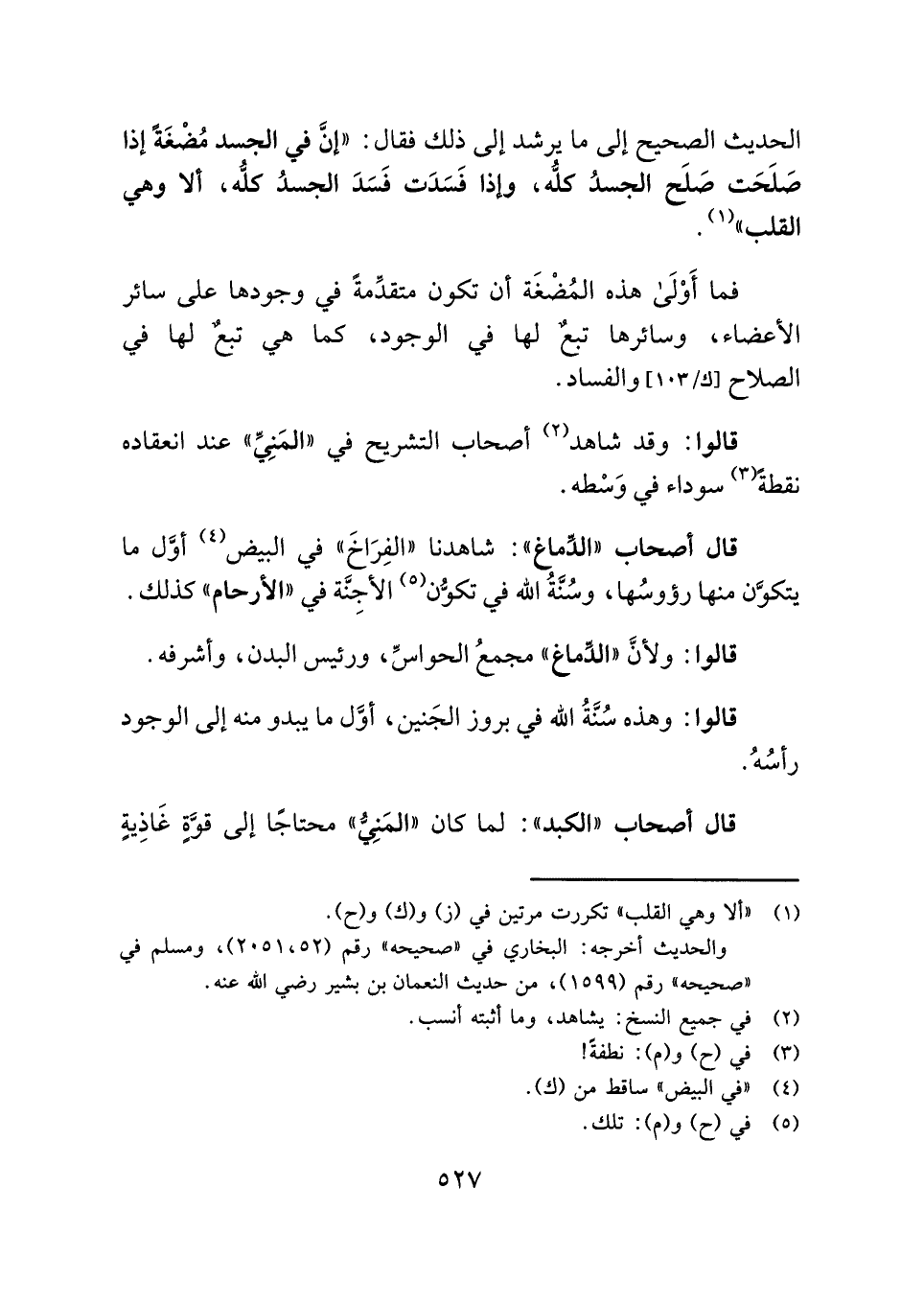 فما أَوْلَى هذه المُضْغَة أن تكون متقدِّمةً في وجودها على سائر الأعضاء، وسائرها تبعٌ لها في الوجود، كما هي تبعٌ لها في الصلاح والفساد.