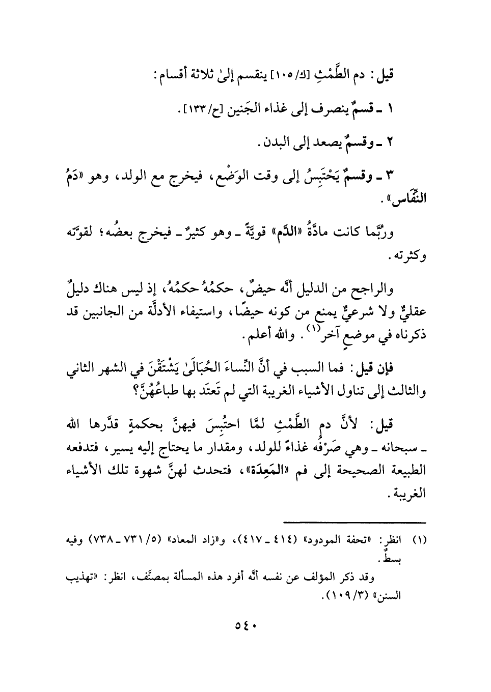قيل: دم الطَّمْثِ ينقسم إلى ثلاثة أقسام: