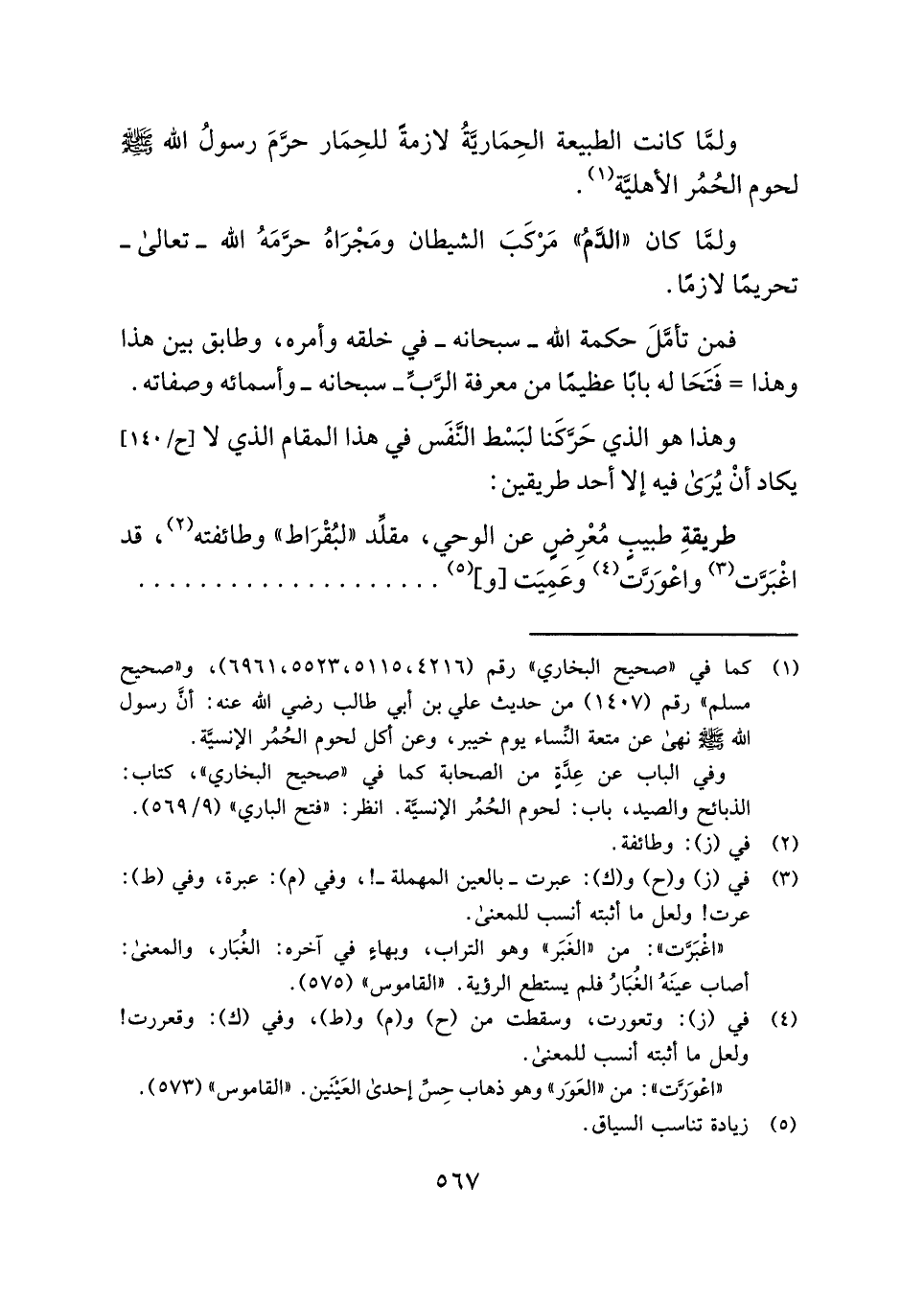 ولمَّا كانت الطبيعة الحِمَاريَّةُ لازمةً للحِمَار حرَّمَ رسولُ الله - صلى الله عليه وسلم - لحوم الحُمُر الأهليَّة (¬١) .