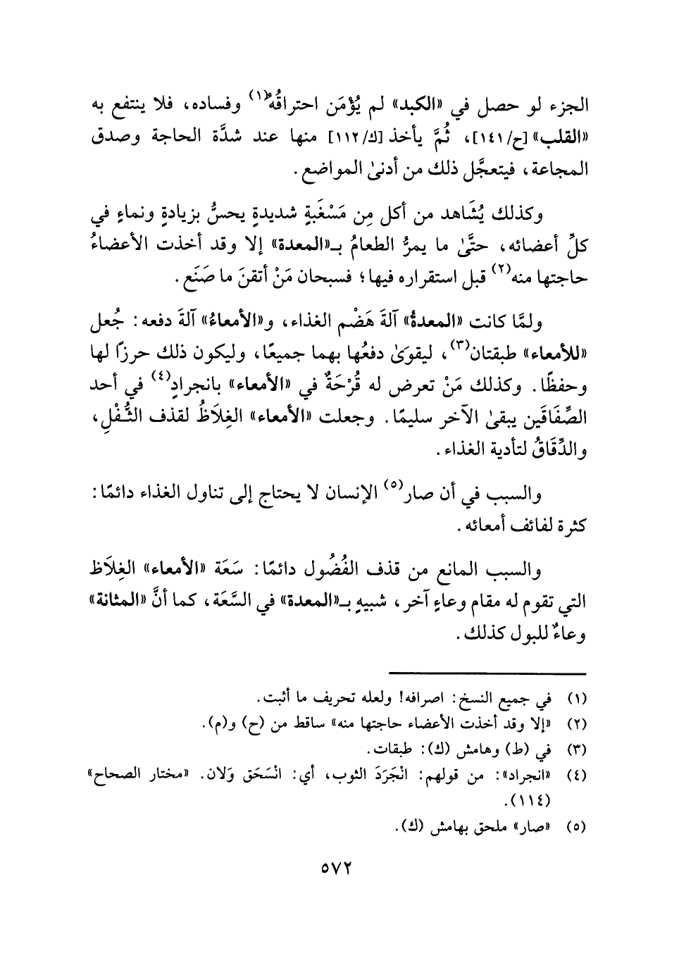 والسبب في أن صار (¬٥) الإنسان لا يحتاج إلى تناول الغذاء دائمًا: كثرة لفائف أمعائه.