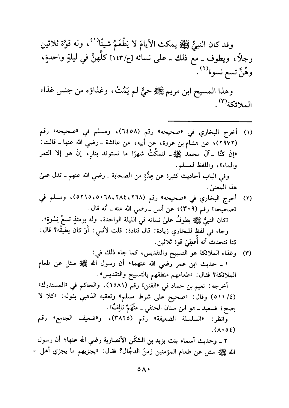 وهذا المسيح ابن مريم - صلى الله عليه وسلم - حيٌّ لم يَمُتْ، وغذاؤه من جنس غذاء الملائكة (¬٣) .