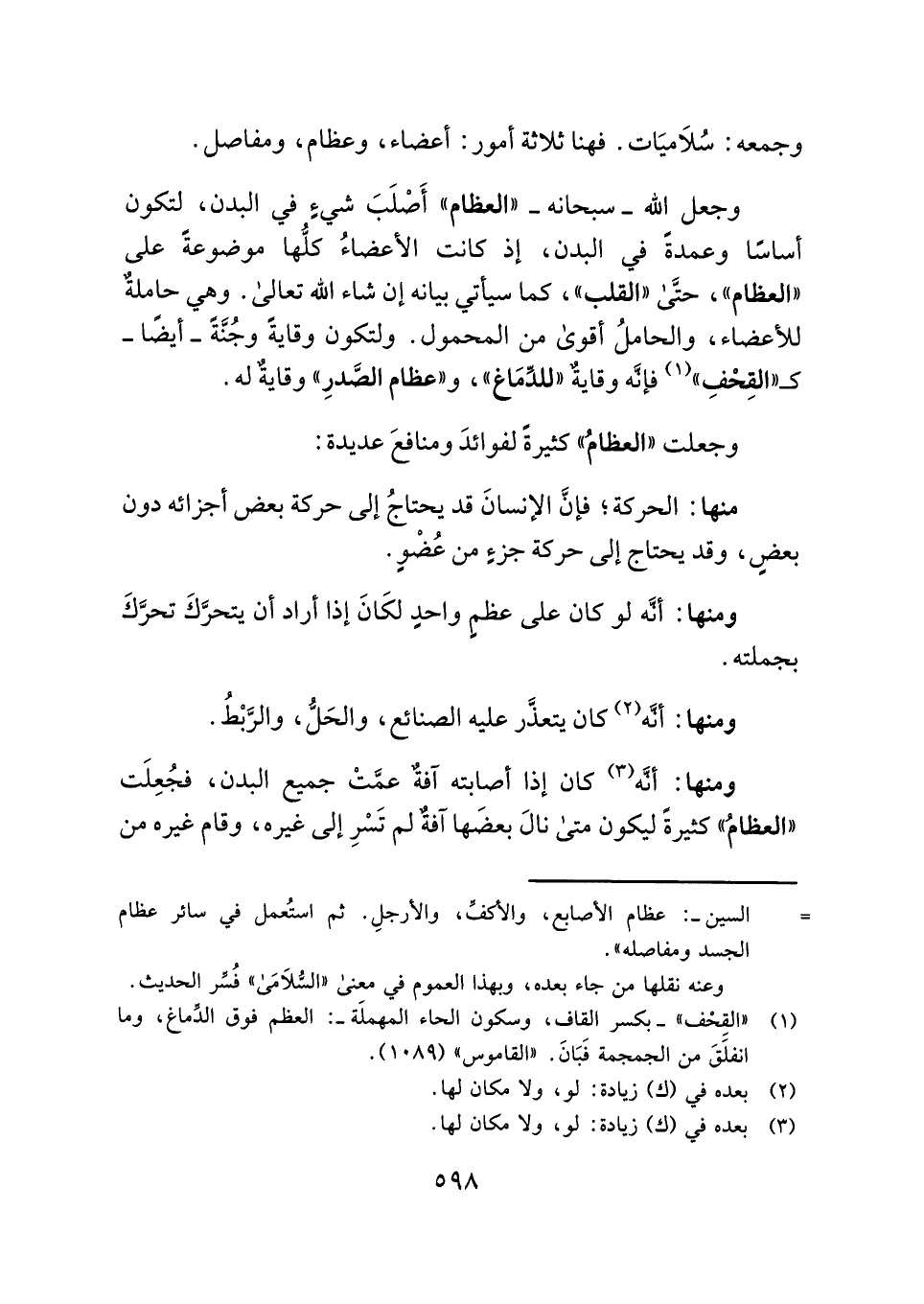 وجمعه: سُلَاميَات. فهنا ثلاثة أمور: أعضاء، وعظام، ومفاصل.