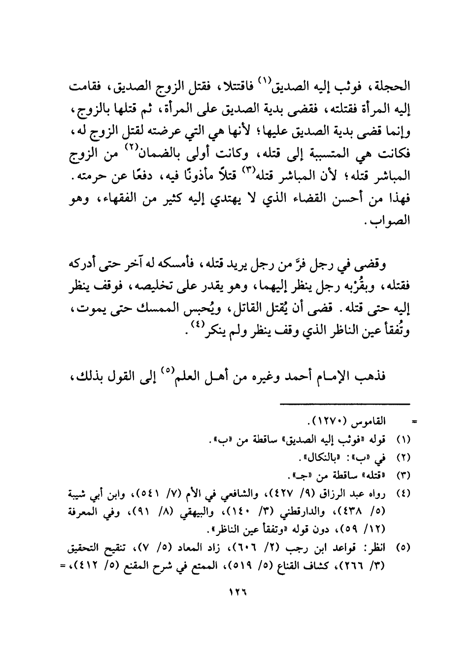 (¬٥) انظر: قواعد ابن رجب (٢/ ٦٠٦)، زاد المعاد (٥/ ٧)، تنقيح التحقيق (٣/ ٢٦٦)، كشاف القناع (٥/ ٥١٩)، الممتع في شرح المقنع (٥/ ٤١٢)، =