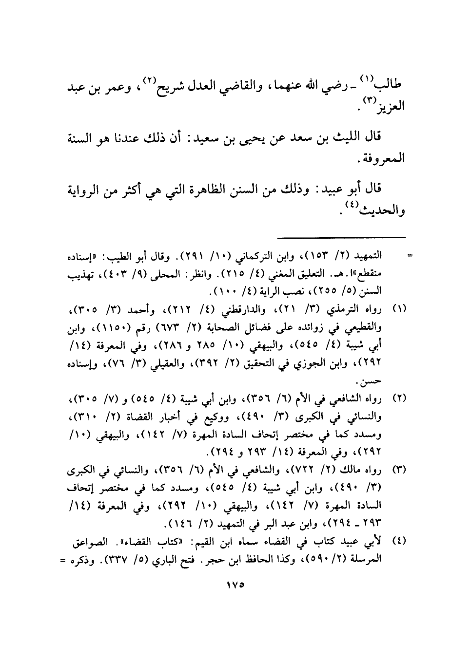 قال أبو عبيد: وذلك من السنن الظاهرة التي هي أكثر من الرواية والحديث (¬٤).