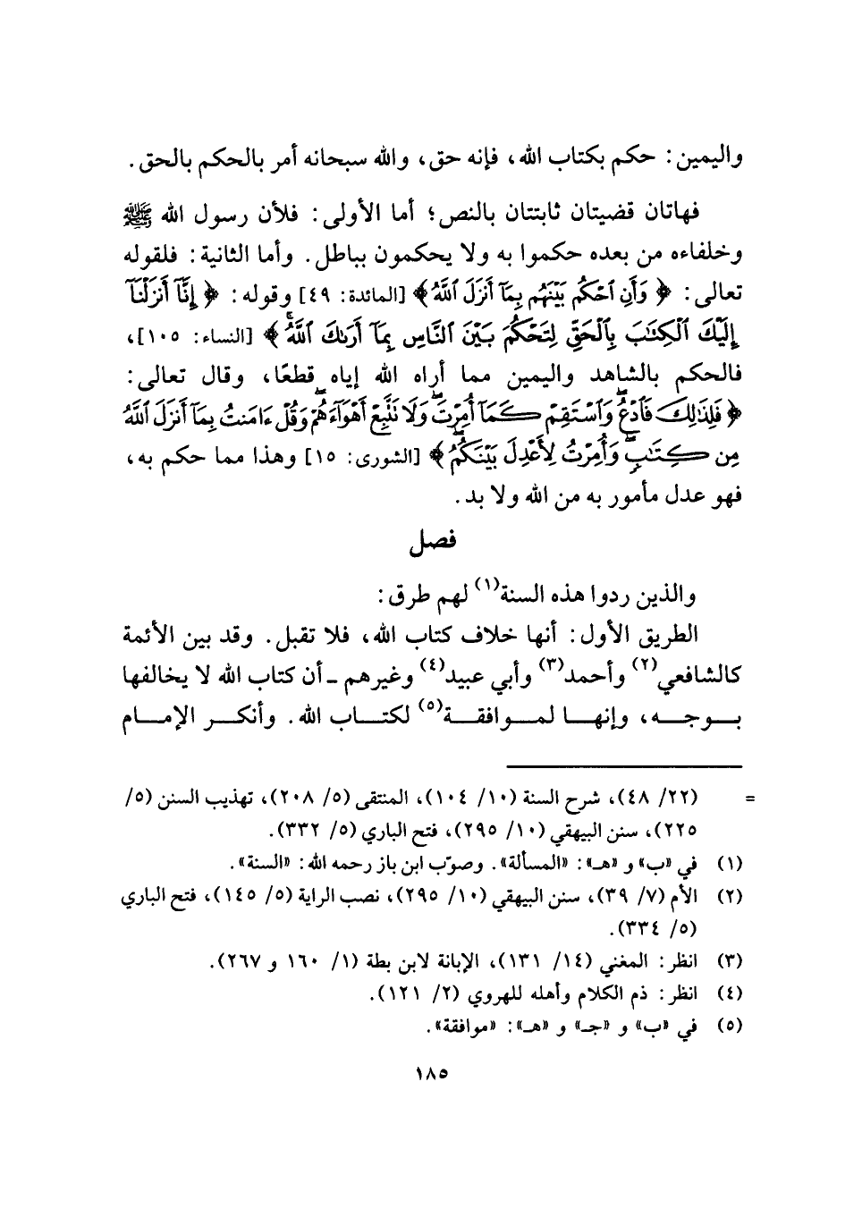 (¬٣) انظر: المغني (١٤/ ١٣١)، الإبانة لابن بطة (١/ ١٦٠ و ٢٦٧).