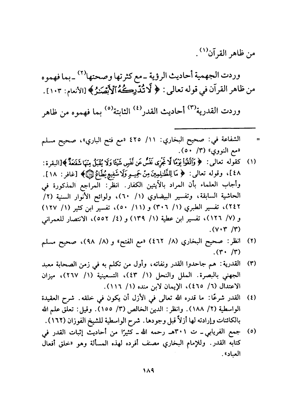 (¬٣) القدرية: هم جاحدوا القدر ونفاته، وأول من تكلم به في زمن الصحابة معبد الجهني بالبصرة. الملل والنحل (١/ ٤٣)، التسعينية (١/ ٢٦٧)، ميزان الاعتدال (٦/ ٤٦٥)، الإيمان لابن منده (١/ ١١٦).