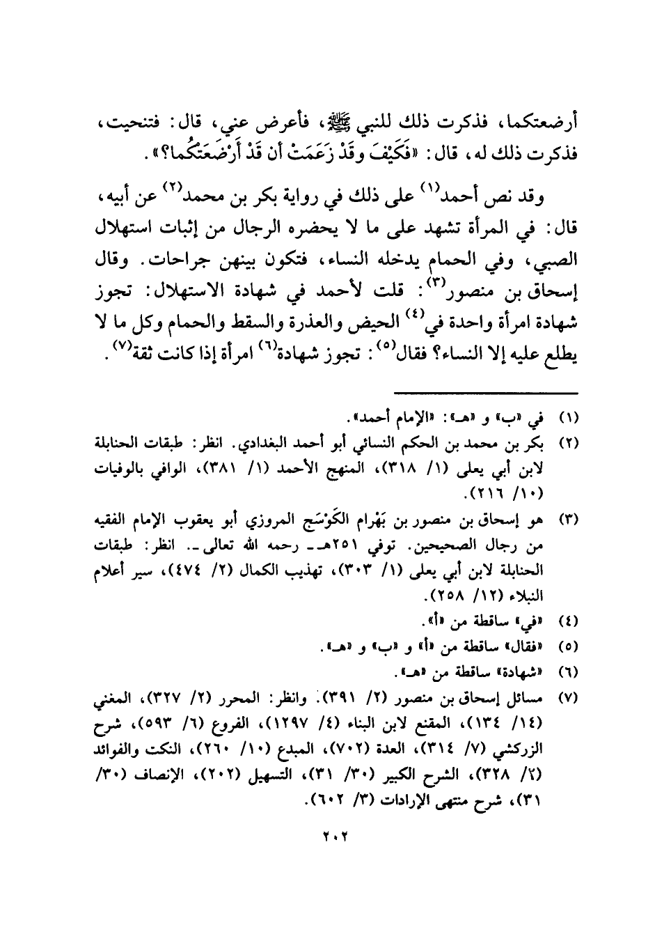 (¬٧) مسائل إسحاق بن منصور (٢/ ٣٩١). وانظر: المحرر (٢/ ٣٢٧)، المغني (١٤/ ١٣٤)، المقنع لابن البناء (٤/ ١٢٩٧)، الفروع (٦/ ٥٩٣)، شرح الزركشي (٧/ ٣١٤)، العدة (٧٠٢)، المبدع (١٥/ ٢٦٠)، النكت والفوائد (٢/ ٣٢٨)، الشرح الكبير (٣٠/ ٣١)، التسهيل (٢٠٢)، الإنصاف (٣٠/ ٣١)، شرح منتهى الإرادات (٣/ ٦٠٢).