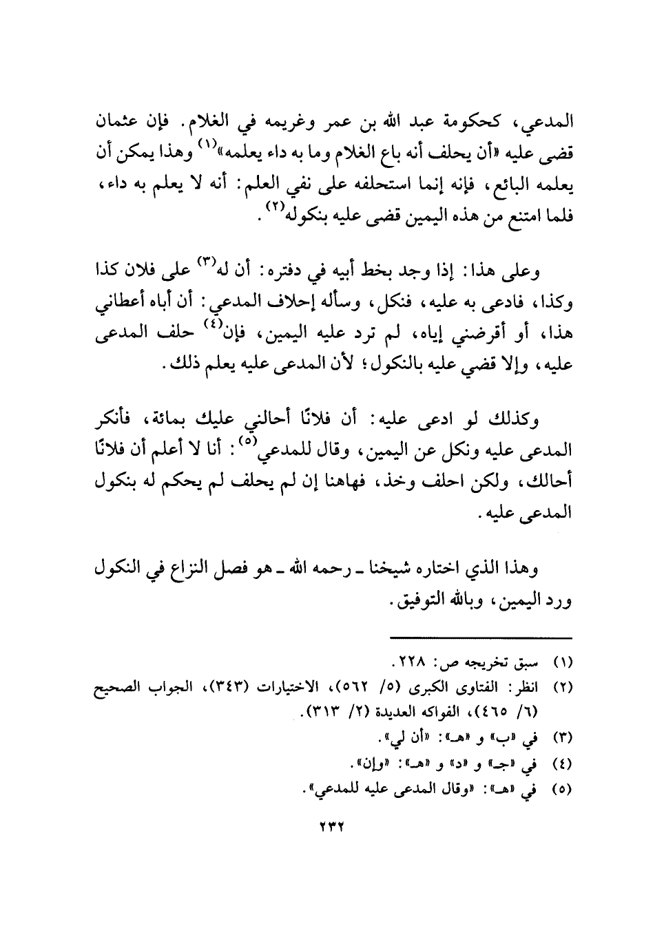 وهذا الذي اختاره شيخنا - رحمه الله - هو فصل النزاع في النكول ورد اليمين، وبالله التوفيق.